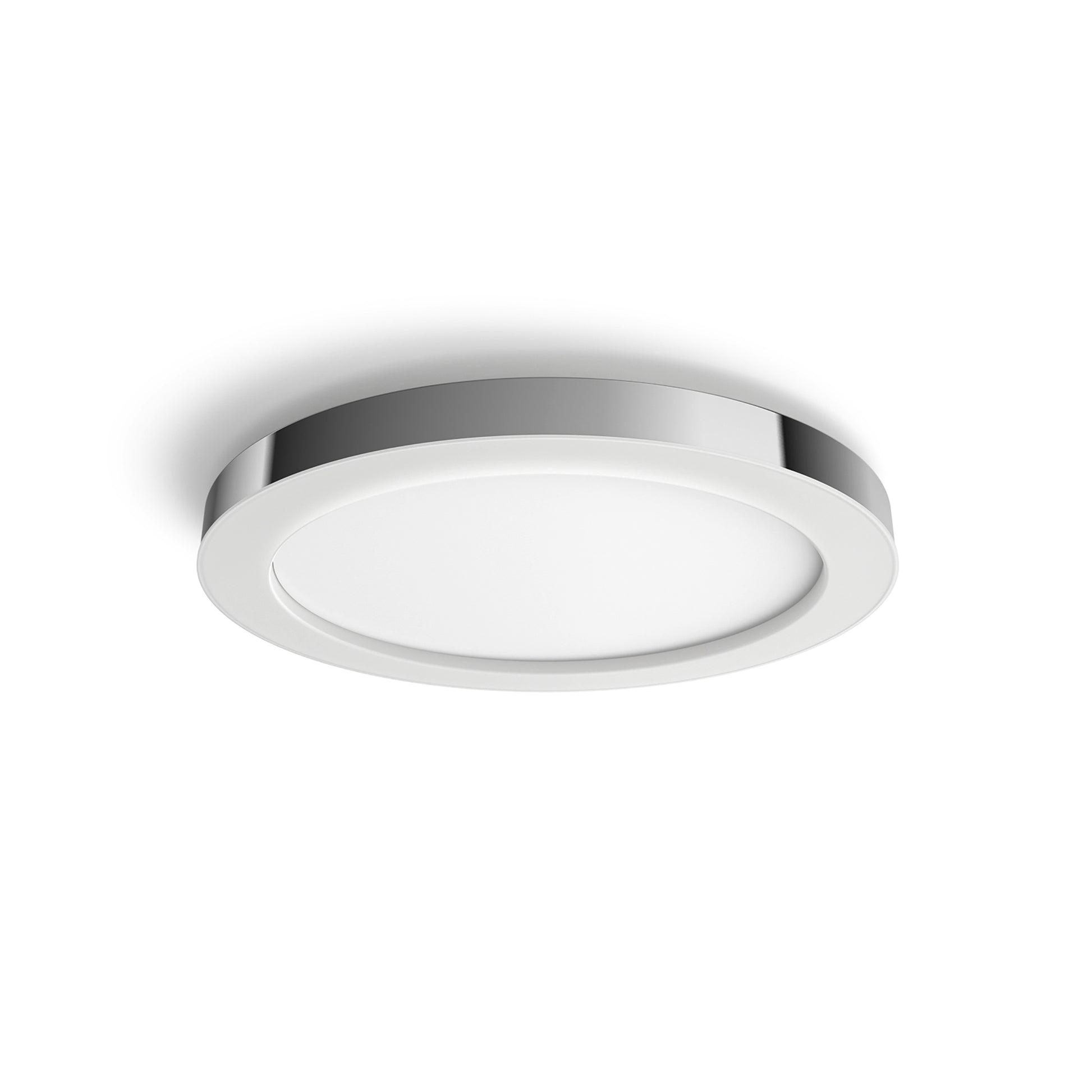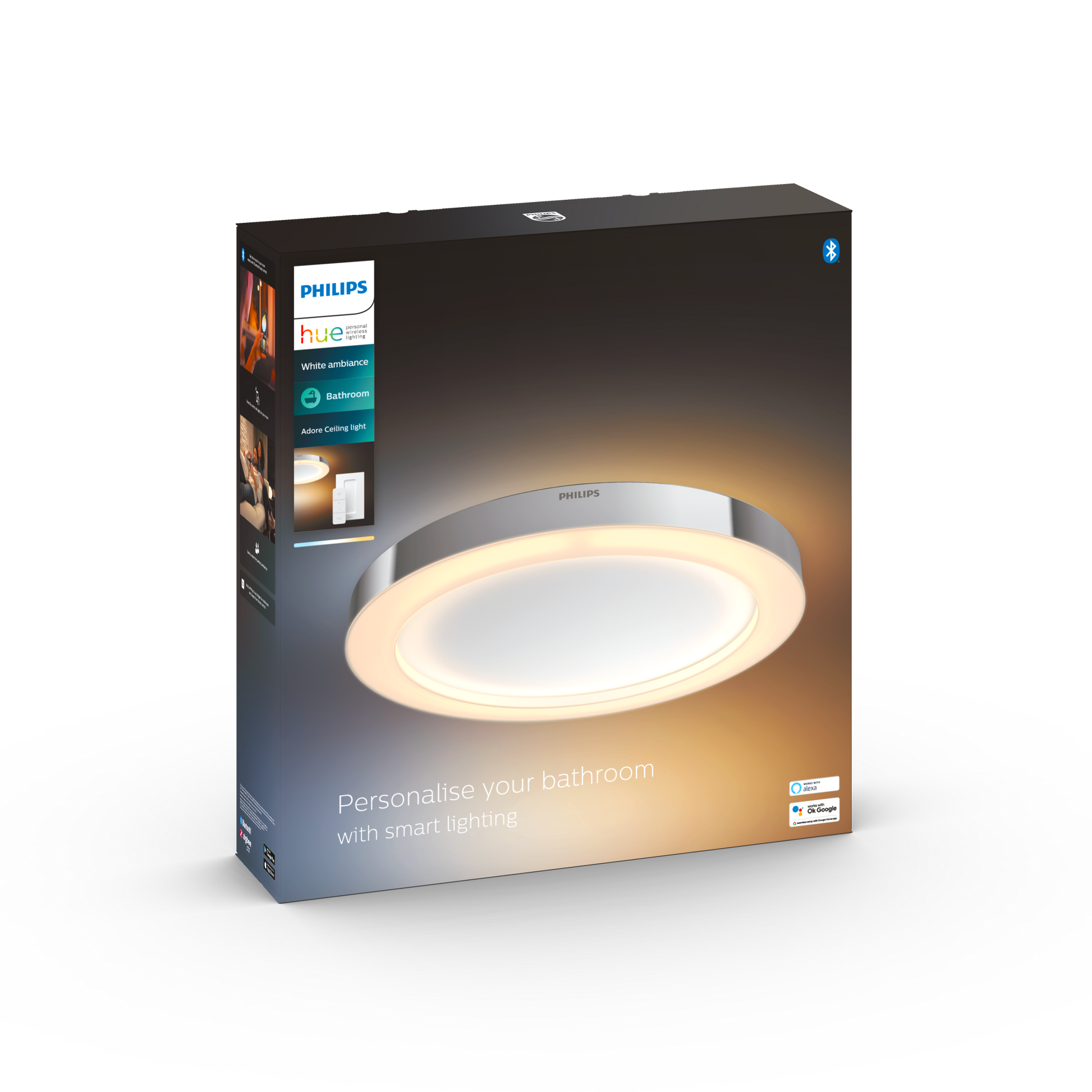 Adore loftlampe fra Philips Hue. Lampen er en del af en større serie, som foruden indeholder et spejl og adskillige andre væg- og loftlamper. Alle lamperne deler samme smarte funktion, nemlig at man kan skifte mellem de 4 farver ved hjælp af den medfølgende lysdæmpekontakt. Eller styr lyset via din smart telefon eller tablet og Hue Broen(købes seperat) Du kan skifte mellem de fire opskifter; varm hvid - hyggelig belysning, Hvid - læselys, Kold hvid - koncentrationslys eller Blålig hvid - energilys. Denne Adore loftlampe er super smart til badeværelset, og kan sammen med spejlet skabe en dejlig stemning