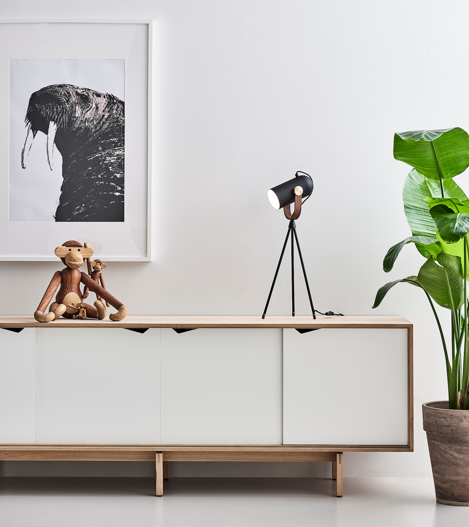 Carronade high er den høje carronade bordlampe. Lampen passer flot ind i serien som både indeholder gulv-, væg-, og pendler. Lampen fås i sort aluminum med fine messing detaljer og en flot bøjle i amerikansk olieret valnød. Lampen er højere en den tidligere bordlampe og kan derfor bruges som skrivebordlampe, på skænken eller i vindueskarmen. Lampen er designet af den unge svenske designer Markus Johansson.
