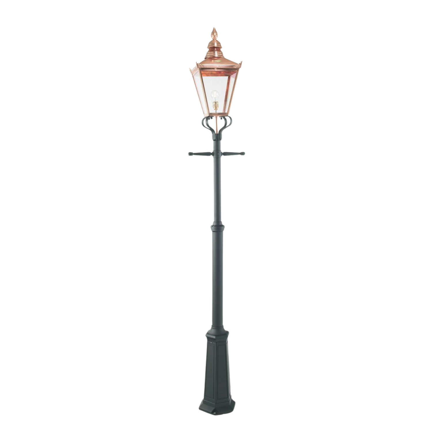 Chelsea 1 stolpelampe fra Norlys, er af højt kvalitet og har et smukt design. Chelsea er en serie bestående af væglamper,lampe i kæde, portallamper og teleskopstolper med 1 og 2 lygtehoveder (stolpelampe). Lamperne er håndlavede i poleret kobber, der efter noget tid, bliver antikgrønne/brune. Skærmene er af slagfast klar polykarbonat. Stolper og vægarme er af lakeret aluminium og stolper er let justerbar i højden. Stolpen har firkantet sokkel og leveres ekskl. forankringssæt, som kan købes her på siden.