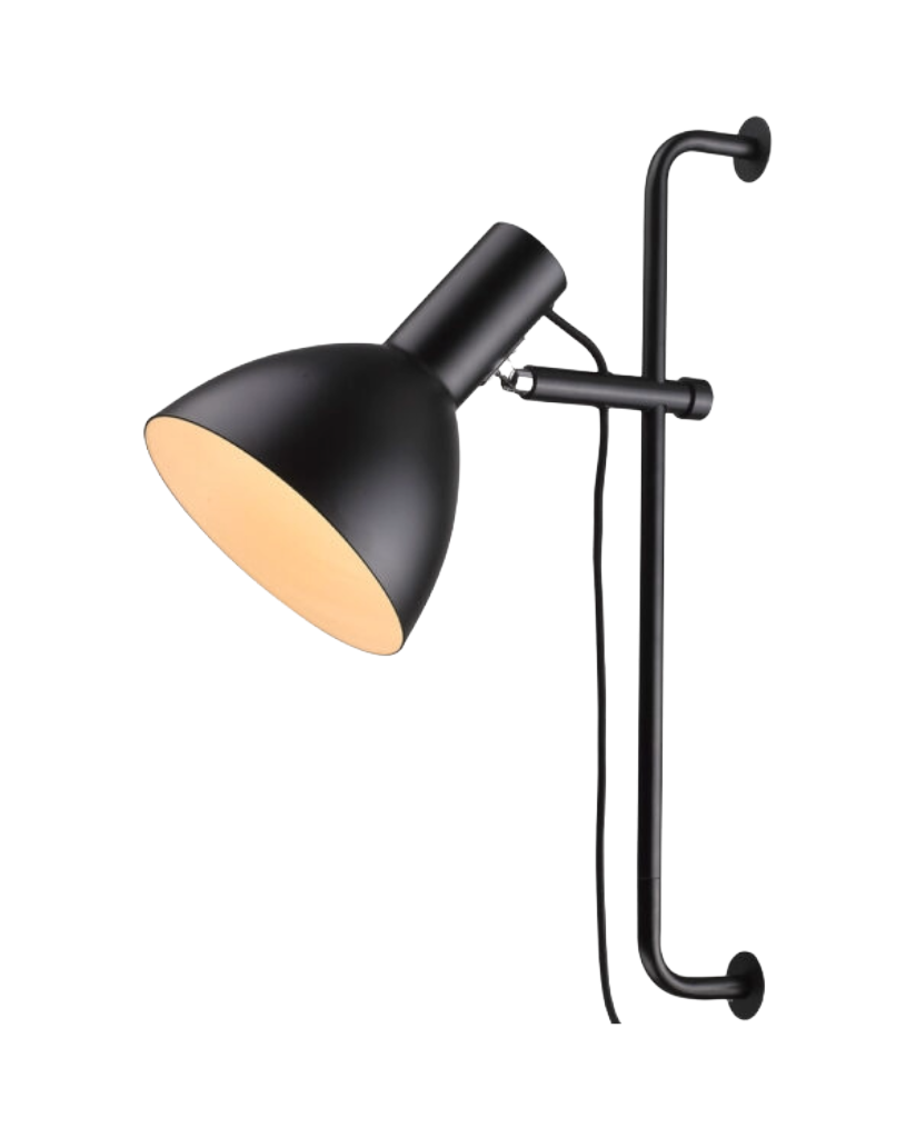 Baltimore væglampe fra Halo Design kommer af en serie bestående af væglampe, bordlampe og forskellige gulvlamper. Disse smarte lamper kan justeres på forskellige måder og afbryderen sidder på toppen af lampehuset.