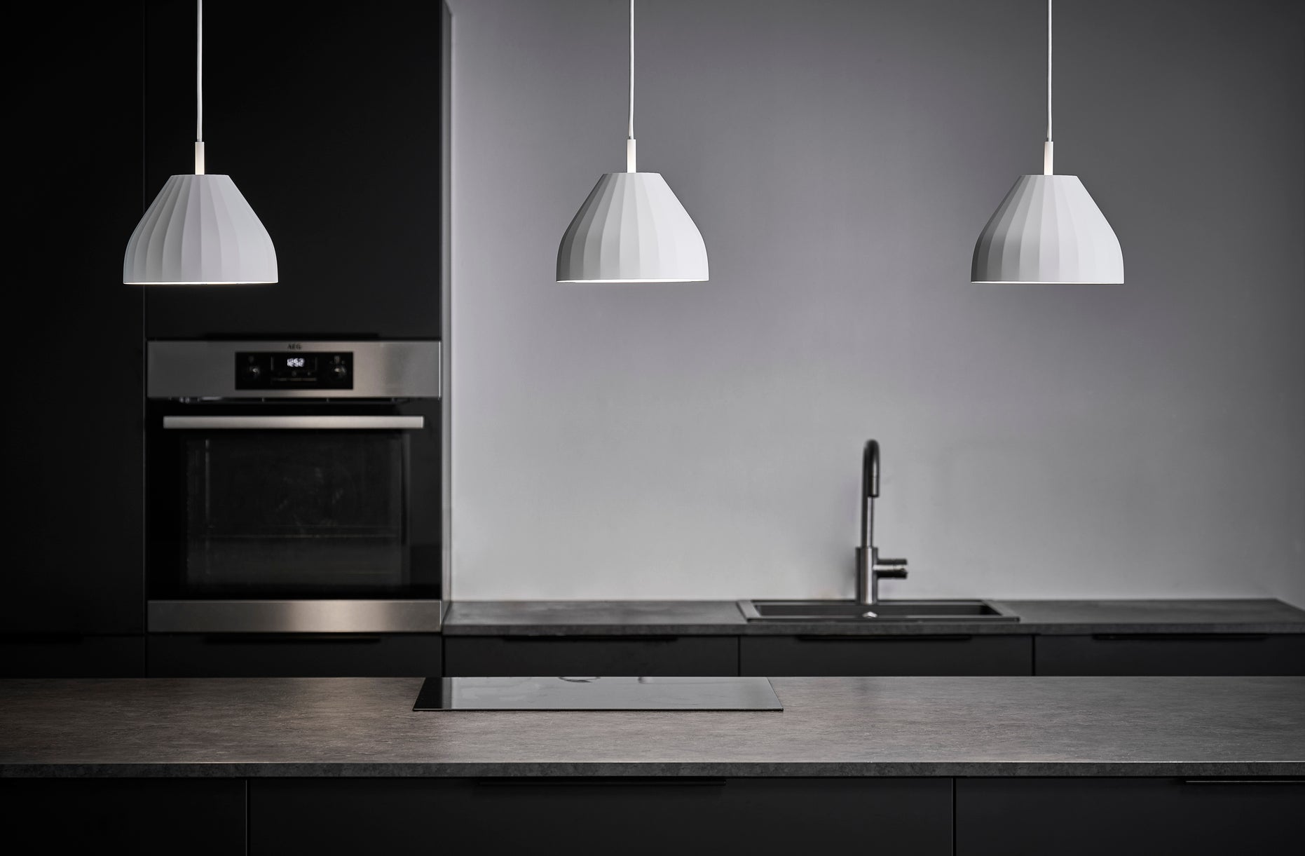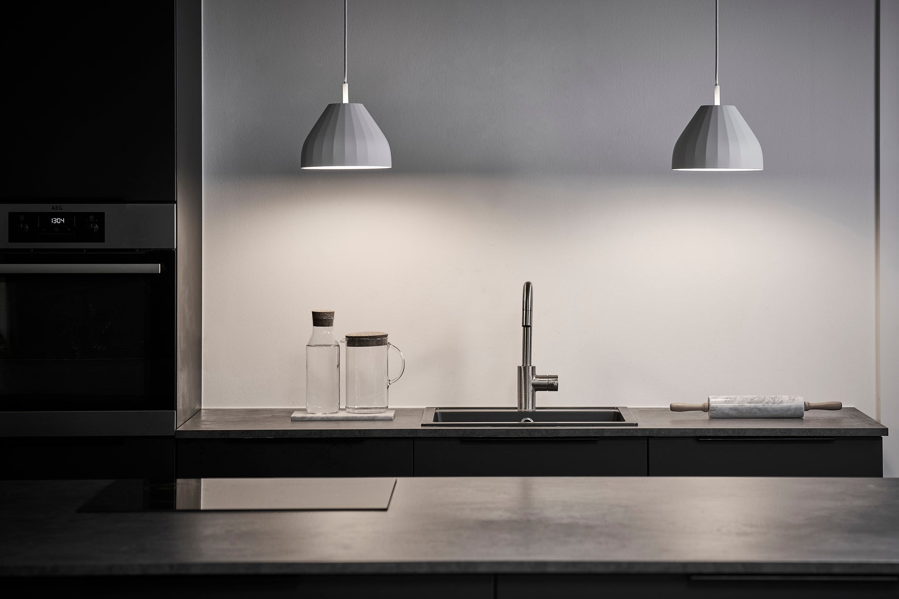 Lampen har en konisk form. Lyset fra lampen rettes både op og ned fra lampen og giver dig derfor et godt arbejdslys samtidig med opadvendt rumbelysning.