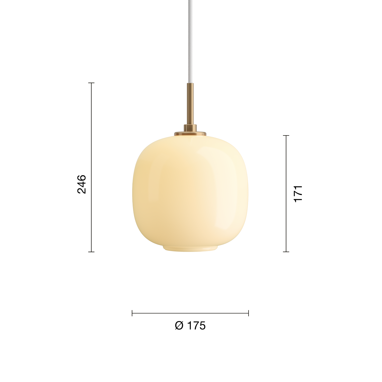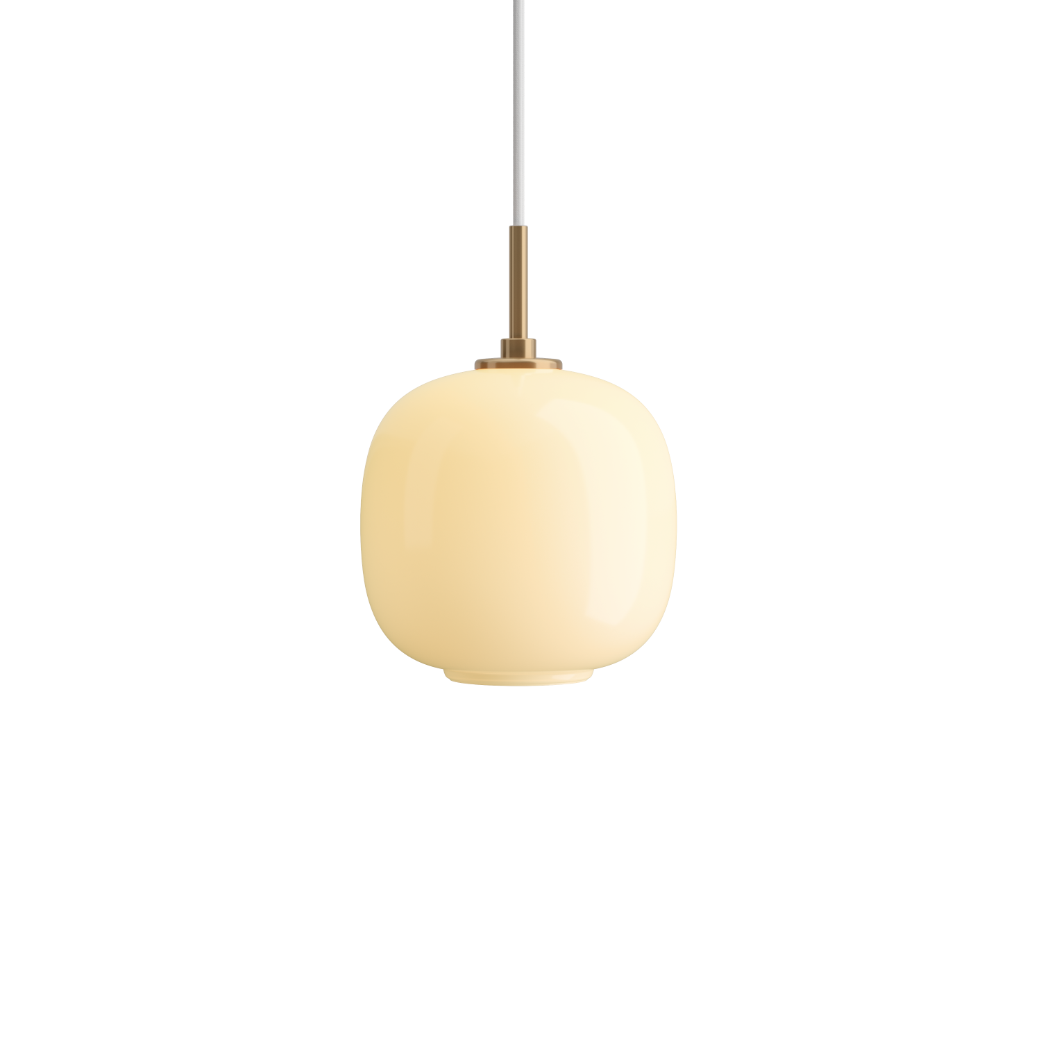- Materialer: Mundblæst opalglas og messing