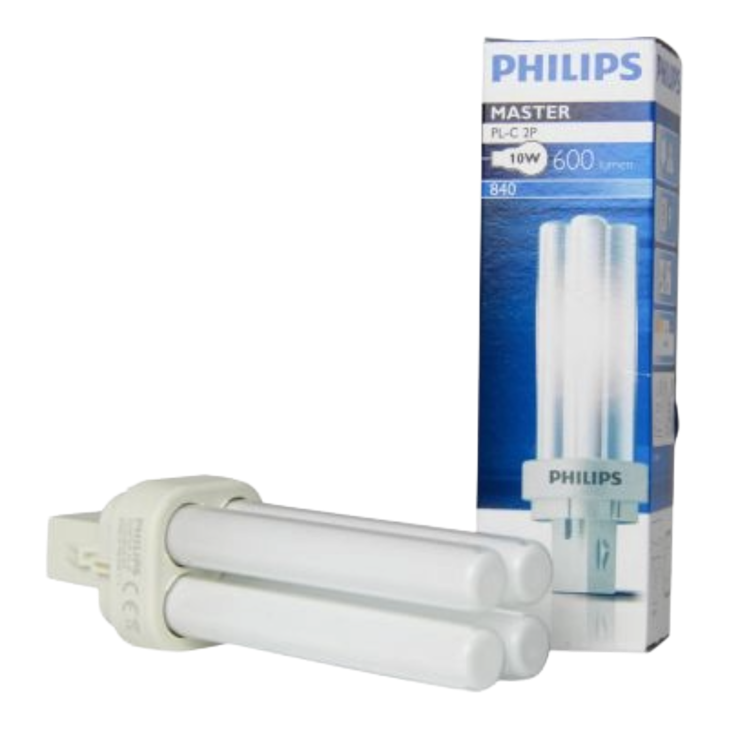 Philips Master PL-C 10W/840 2P G24D-1 er en kompakt lysstofpære, der leverer et effektivt, koldt hvidt lys (4000K) med høj farvegengivelse (CRI 82). Pæren er ideel til generel belysning i kontorer, butikker, hoteller og andre erhvervslokaler, hvor der ønskes et behageligt, energibesparende lys. Den har et G24D-1 stik med 2 ben og er kompatibel med passende konventionelle forkoblinger. Takket være Philips’ høje kvalitet får du en lang levetid og stabil lysydelse, som reducerer vedligeholdelsesomkostningerne.