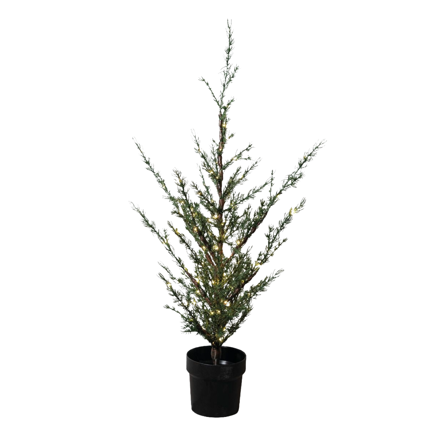 Ønsker du et virkeligt smukt cedertræ, som ikke skal skiftes ud fra år til år, så skal du have dette Milas træ fra Sirius. Træer leveres med en tynd lyskæde, som næsten ikke kan ses. Grenene er flotte grønne, og har en virkelig naturtro farve og udseende. Træet leveres i en sort potte.
