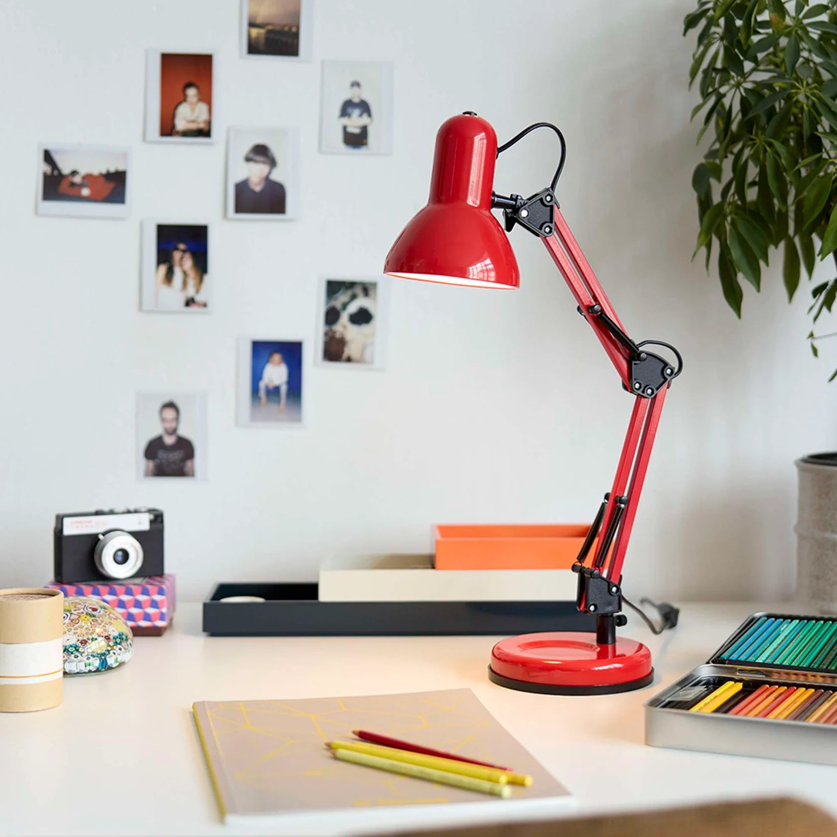 Bring farve, energi og karakter ind i dit hjem med Alba Arkitektlampen i rød fra Nielsen Light. Den kombinerer klassisk arkitektdesign med moderne detaljer og en levende farve, der giver dit skrivebord, arbejdsplads eller læsehjørne et personligt og inspirerende udtryk.