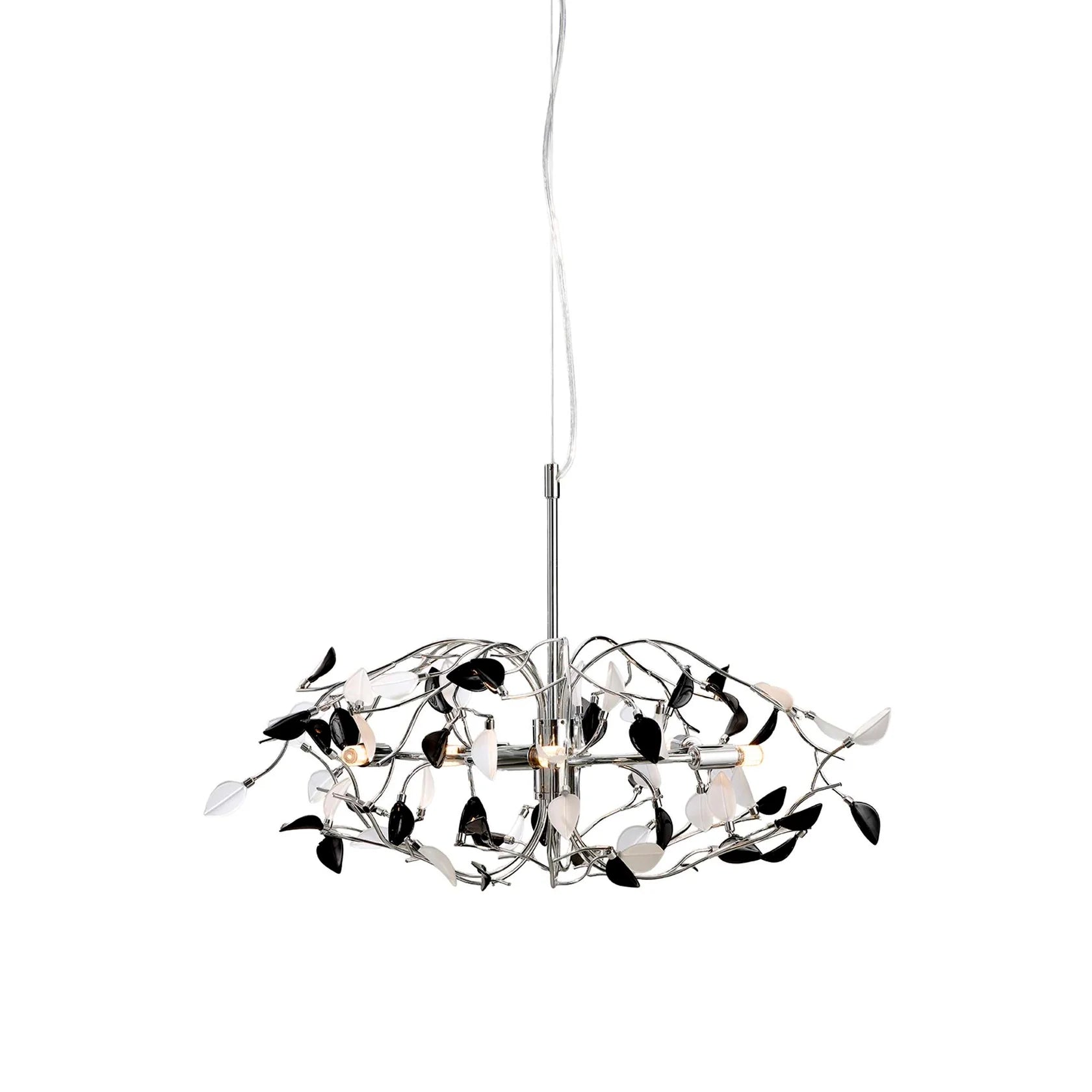 Iben pendel fra Nielsen Light er et kunstværk i sig selv – en lampe, der kombinerer moderne design med klassisk luksus. De 74 elegante glasblade i sort og hvid danner et smukt og levende lysmønster, som spreder varme og hygge i ethvert rum.
