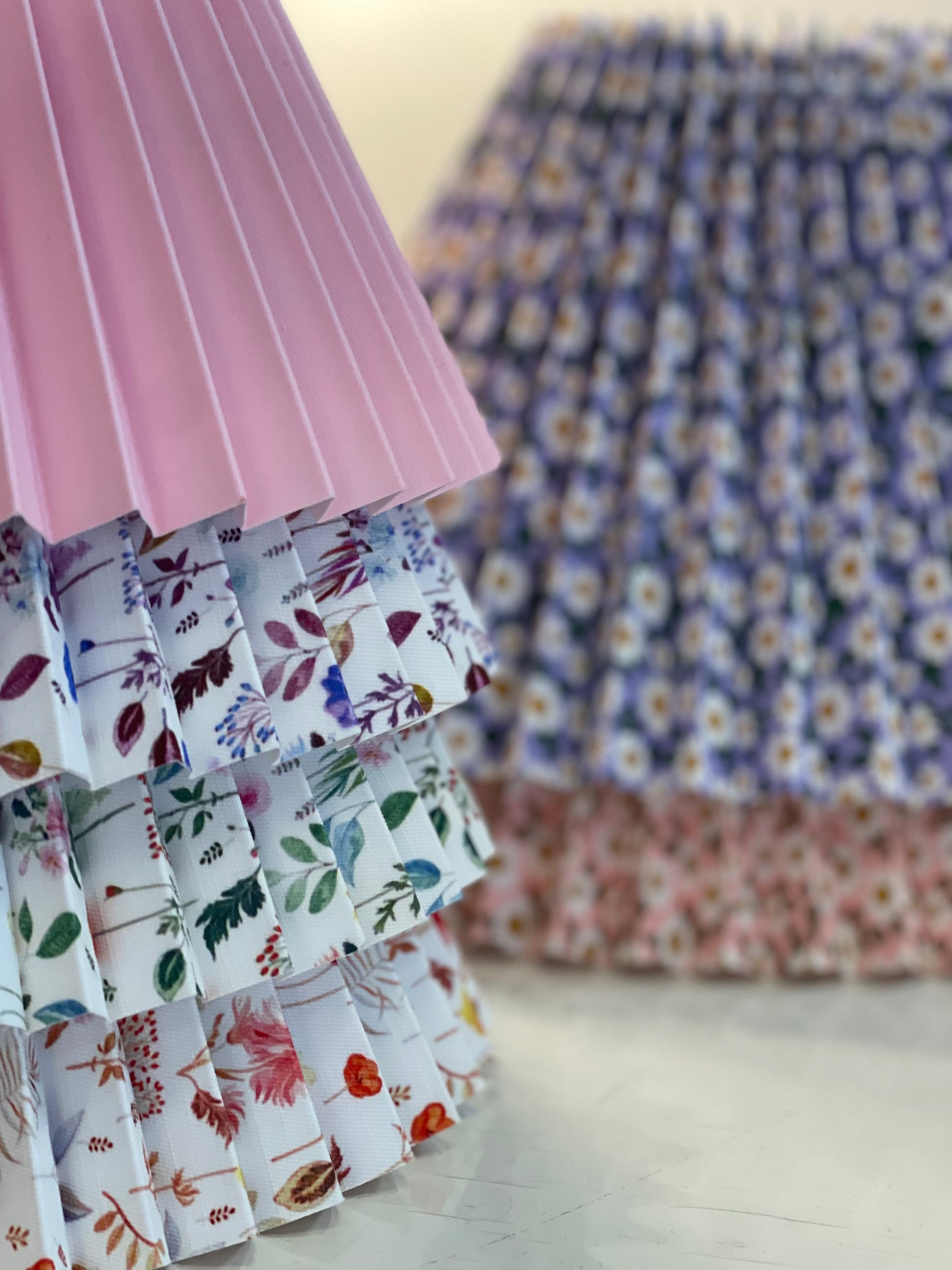 Her får du en skøn lampeskærm, med et blomstret mønster. Skærmen kan give dit et hyggeligt og romantisk look, og er nem at sætte på lampen, da den blot klemmes ned over pæren.