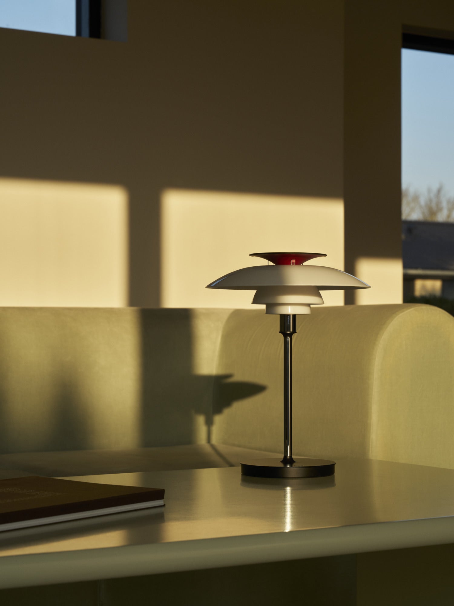 PH 80 Portable er en moderne, genopladelig fortolkning af Poul Henningsens ikoniske treskærmsdesign. Den udstråler samme bløde, behagelige og blændfrie lys som den klassiske PH 80 – men kan nu tages med overalt i hjemmet.