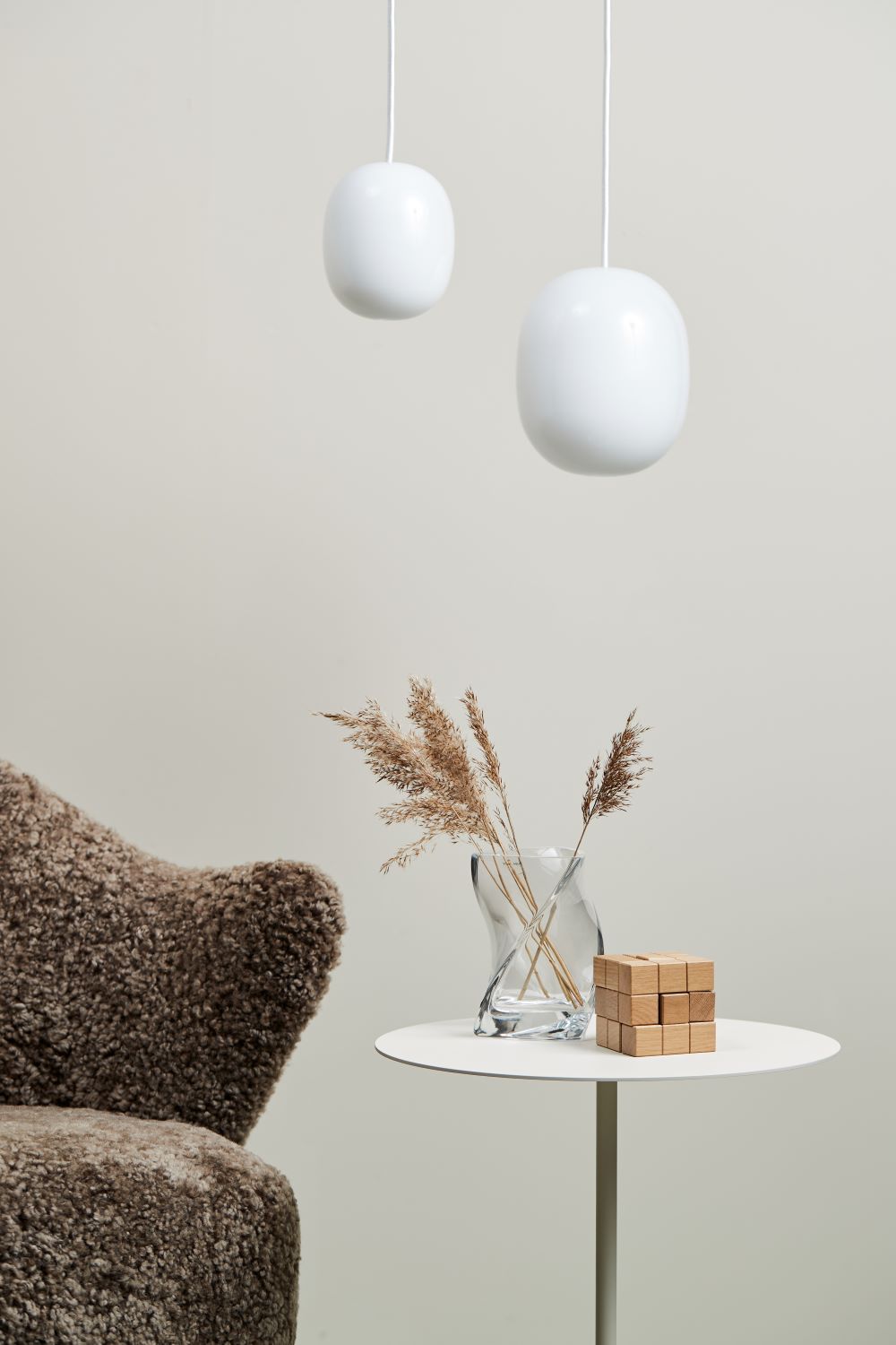 SUPERÆG 150P Pendel har en organisk, strømlinet form, der balancerer det bløde og geometriske. Den er fremstillet af hvidt opalt glas, som sikrer et diffust og behageligt lys, perfekt til både spiseborde, køkkener og stuer.