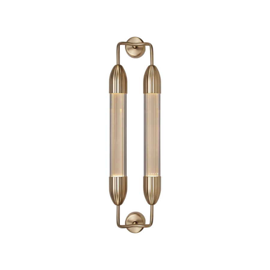 Den slanke konstruktion og den blanke messingfinish tilfører et eksklusivt præg til væggen – perfekt som dekorativ belysning i stue, entre eller soveværelse. Lyset reflekteres smukt i overfladen og giver et varmt og indbydende skær, der fremhæver messingens naturlige glød.