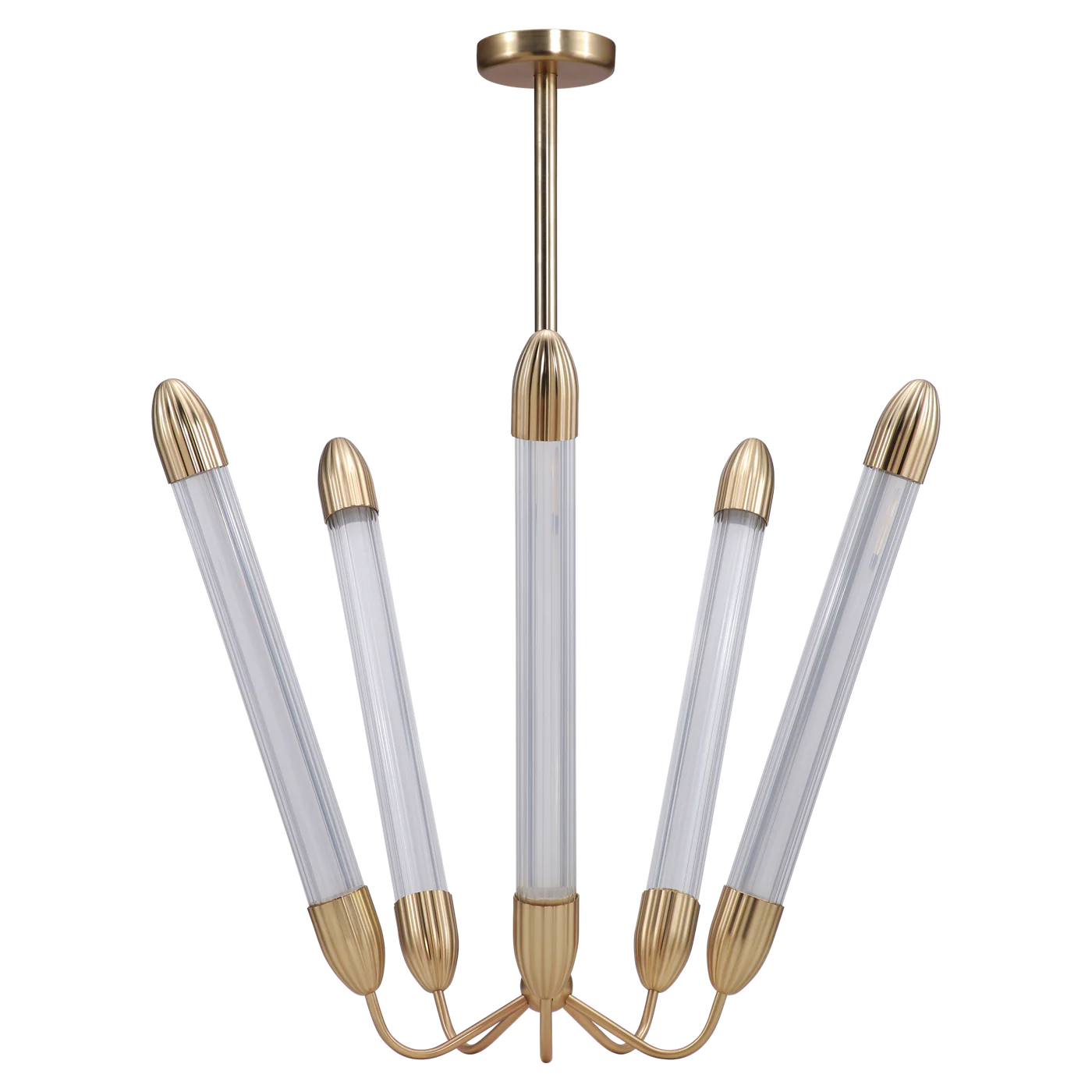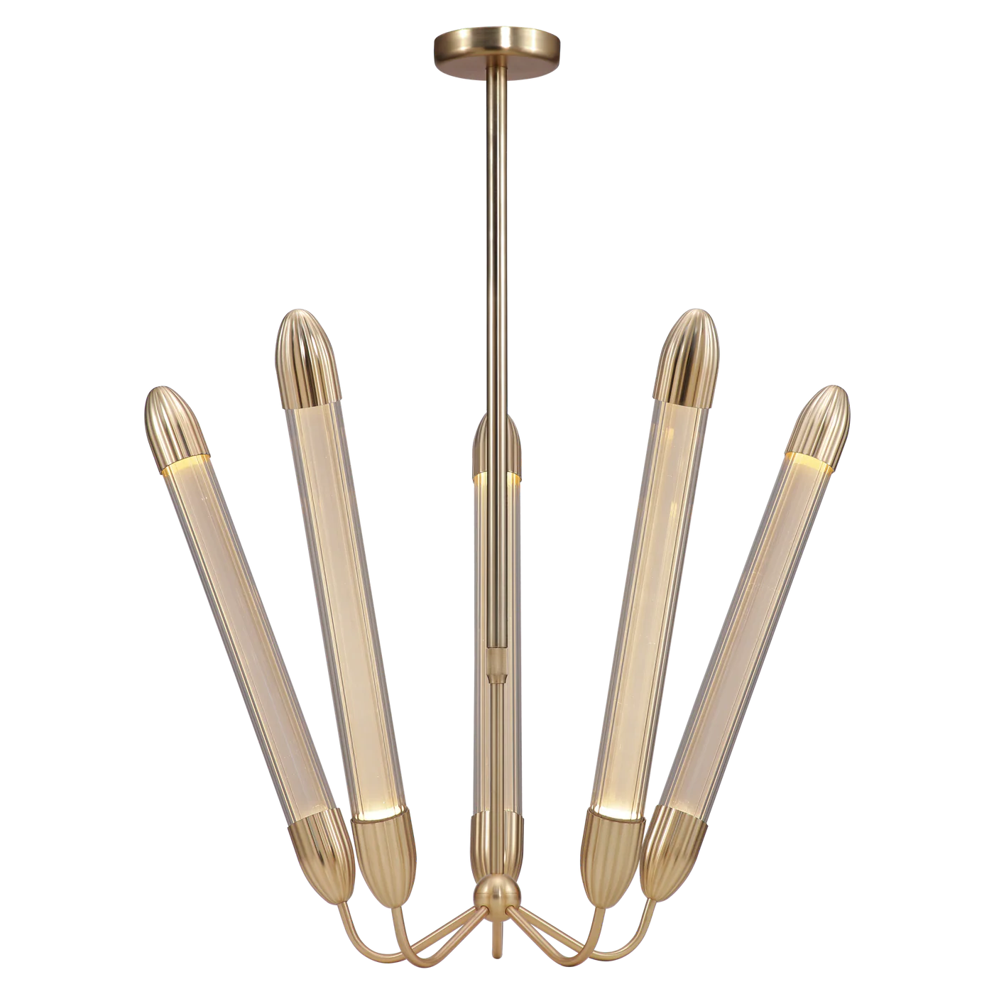 Den langstrakte form gør lampen ideel over spisebordet, køkkenøen eller i en hall, hvor den både fungerer som et stilfuldt designstatement og en effektiv lyskilde. Det varme skær fra lyset fremhæver messingens glød og skaber en hyggelig atmosfære i rummet.