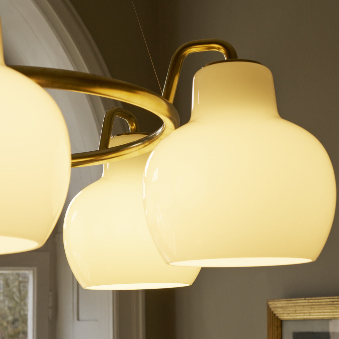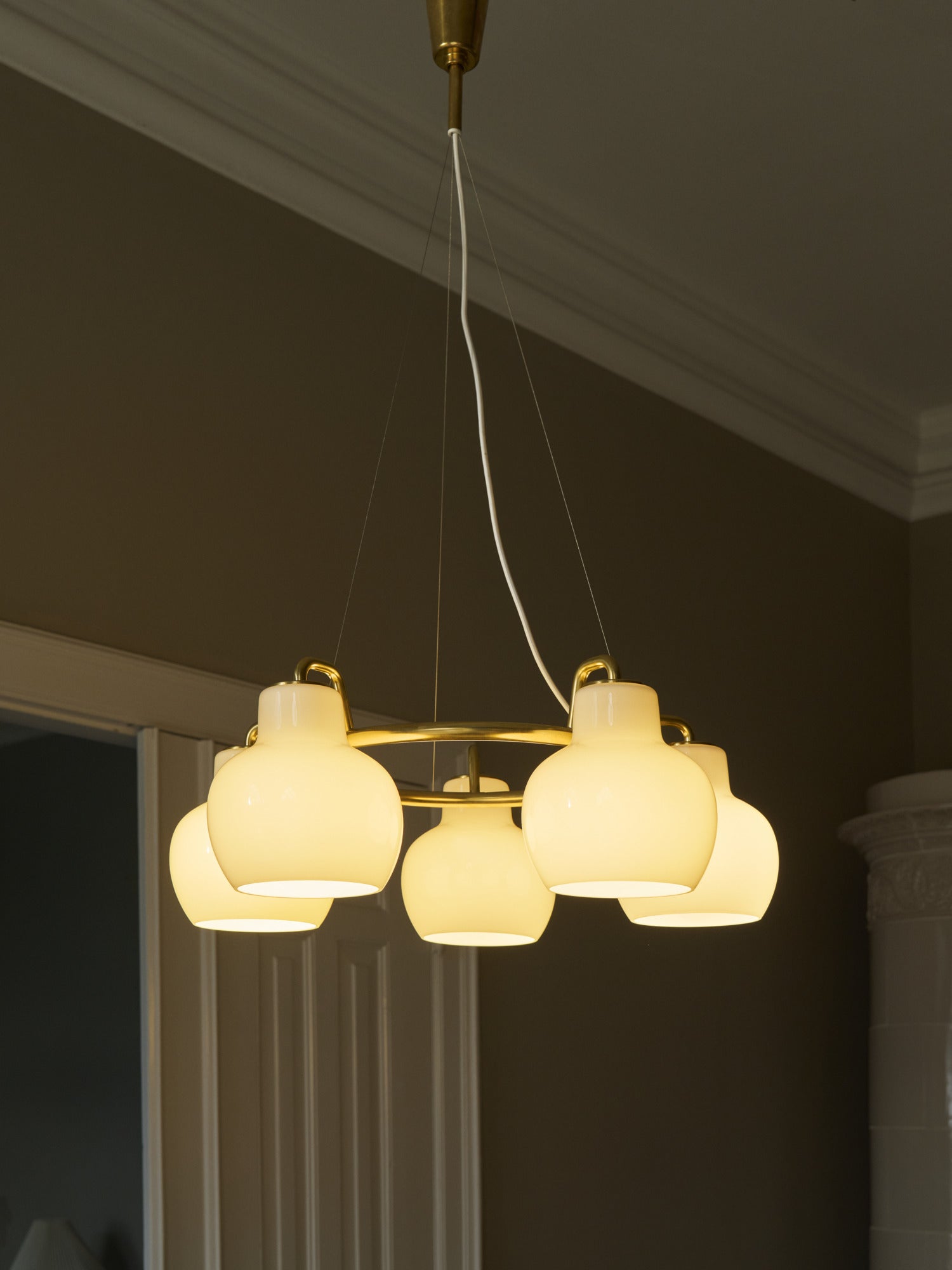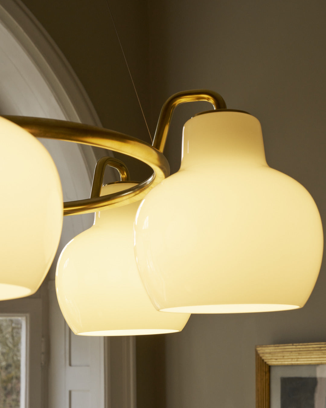 VL Ringkronen er designet af en af Danmarks mest betydende arkitekter nogensinde, nemlig Vilhem Lauritzen. VL Ringkronen har sine rødder i en lampe, der er designet til DR's gamle radiohus i København tilbage i 1940'erne. Serien er nu i 2019 blevet relanceret, hvor lampen er tro mod sine originale materialer og sit originale design. Selve kronen som fås med 3, 5 eller 7 lyskilder er fremstillet af ubehandlet poleret messing, og kommer med blanke hvide mundblæste opalglas. Seriens unikke design er med til, at lampen giver et autentisk touch og et dejligt blødt lys. VL Ringkronen passer derfor perfekt ind i den moderne livsstil.
