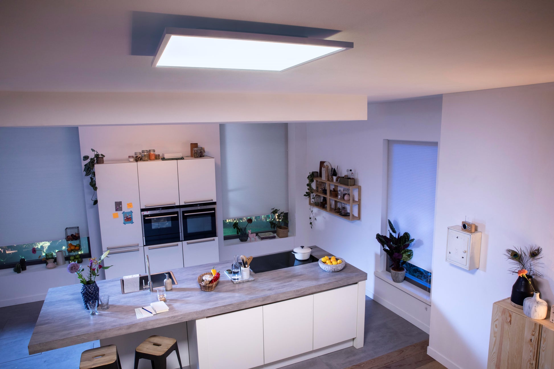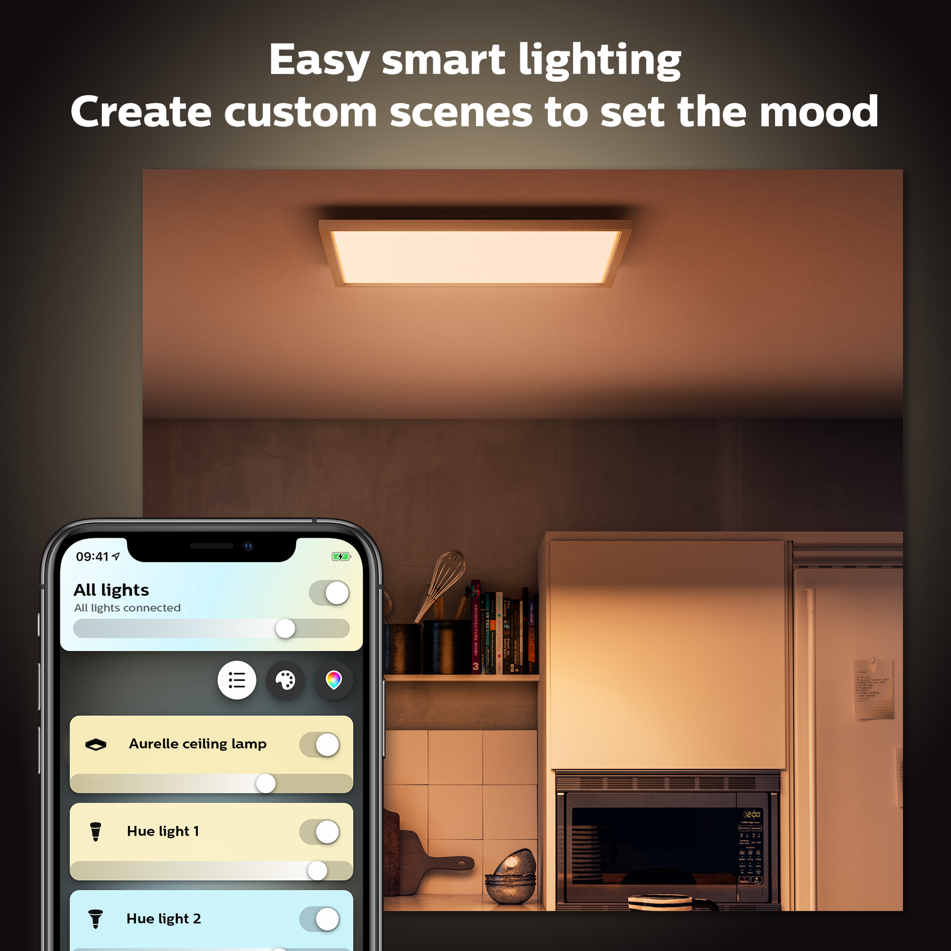 Fyra nya Aurelle taklampor från Philps Hue, som alla ingår i Hue ambiance-serien. Lamporna finns i tre olika former, två finns i fyrkantig form men i olika storlekar, en rund taklampa och en med rektangulär form. Dessa funktionella och moderna lampor är designade för att skapa en känsla av mer rymd i hemmet, och det är därför mycket praktiskt att lamporna inte är större än 4,6 cm, eftersom de därmed kan användas även i hem med lågt i tak.