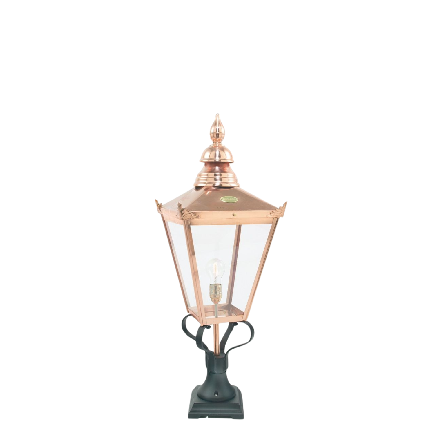 Chelsea 956 957 dörrlampor från Norlys är av hög kvalitet och har en vacker design. Chelsea är en serie bestående av vägglampor, kedjelampor, portallampor och teleskopstolpar med 1 och 2 lamphuvuden (stolplampa). Lamporna är handgjorda i polerad koppar som efter en tid blir antikgrön/brun. Skärmarna är tillverkade av slagtålig klar polykarbonat. Stolpar och väggarmar är tillverkade av lackerad aluminium. Levereras exkl. förankringsset modell 307, som finns att köpa här på sajten.