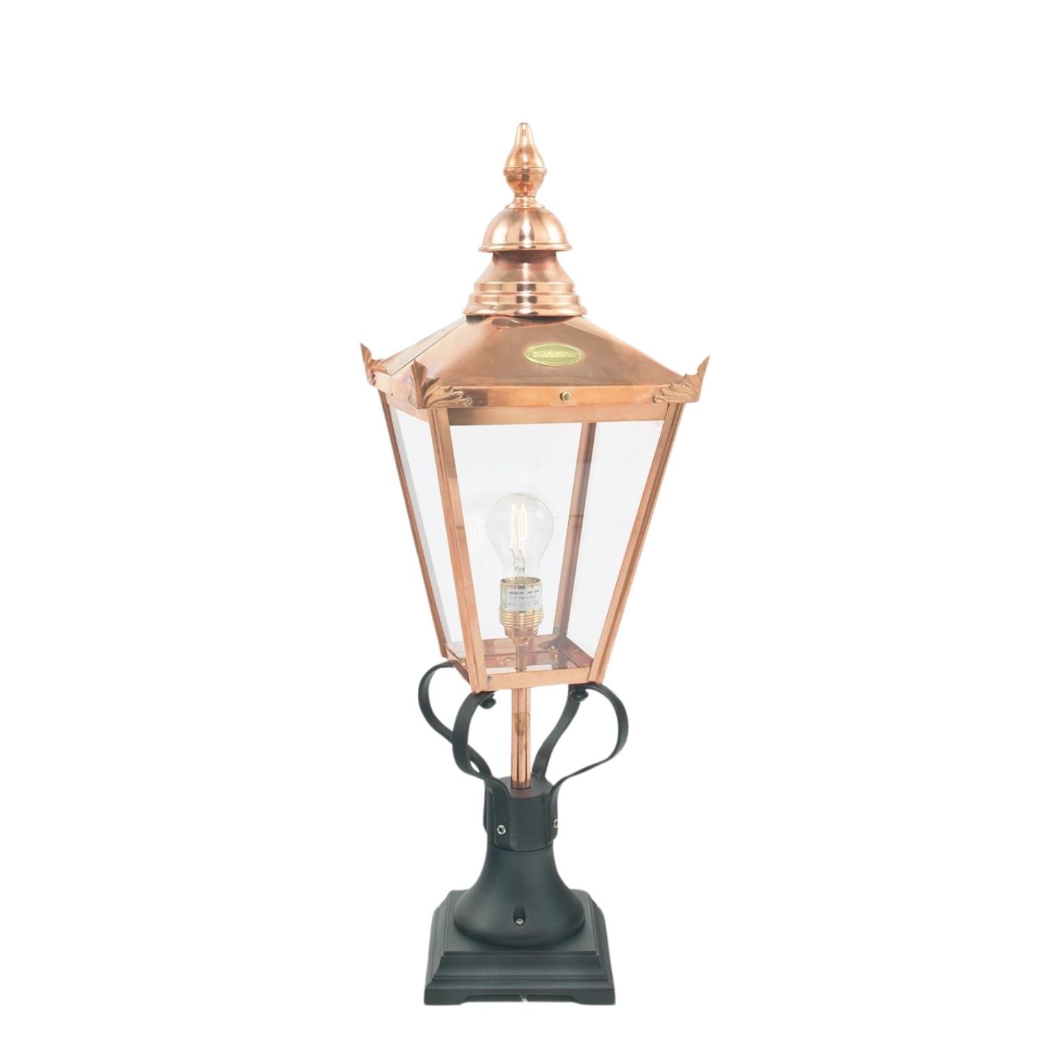 Chelsea 956 957 dörrlampor från Norlys är av hög kvalitet och har en vacker design. Chelsea är en serie bestående av vägglampor, kedjelampor, portallampor och teleskopstolpar med 1 och 2 lamphuvuden (stolplampa). Lamporna är handgjorda i polerad koppar som efter en tid blir antikgrön/brun. Skärmarna är tillverkade av slagtålig klar polykarbonat. Stolpar och väggarmar är tillverkade av lackerad aluminium. Levereras exkl. förankringsset modell 307, som finns att köpa här på sajten.