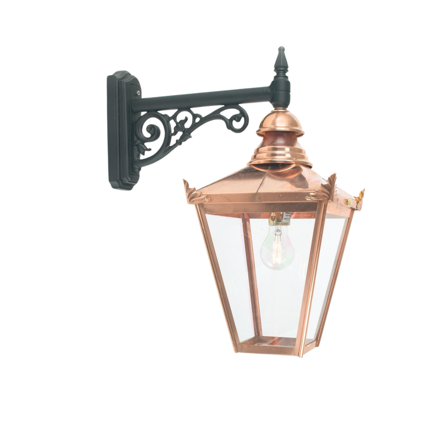 Vägglampan Chelsea 960 från Norlys är av hög kvalitet och har en vacker design. Chelsea är en serie bestående av vägglampor, kedjelampor, portallampor och teleskopstolpar med 1 och 2 lamphuvuden (stolplampa). Lamporna är handgjorda i polerad koppar som efter en tid blir antikgrön/brun. Skärmarna är tillverkade av slagtålig klar polykarbonat. Stolpar och väggarmar är tillverkade av lackerad aluminium. Denna modell kan monteras på hörnfäste 152 i svart, som finns att köpa här på denna sida.