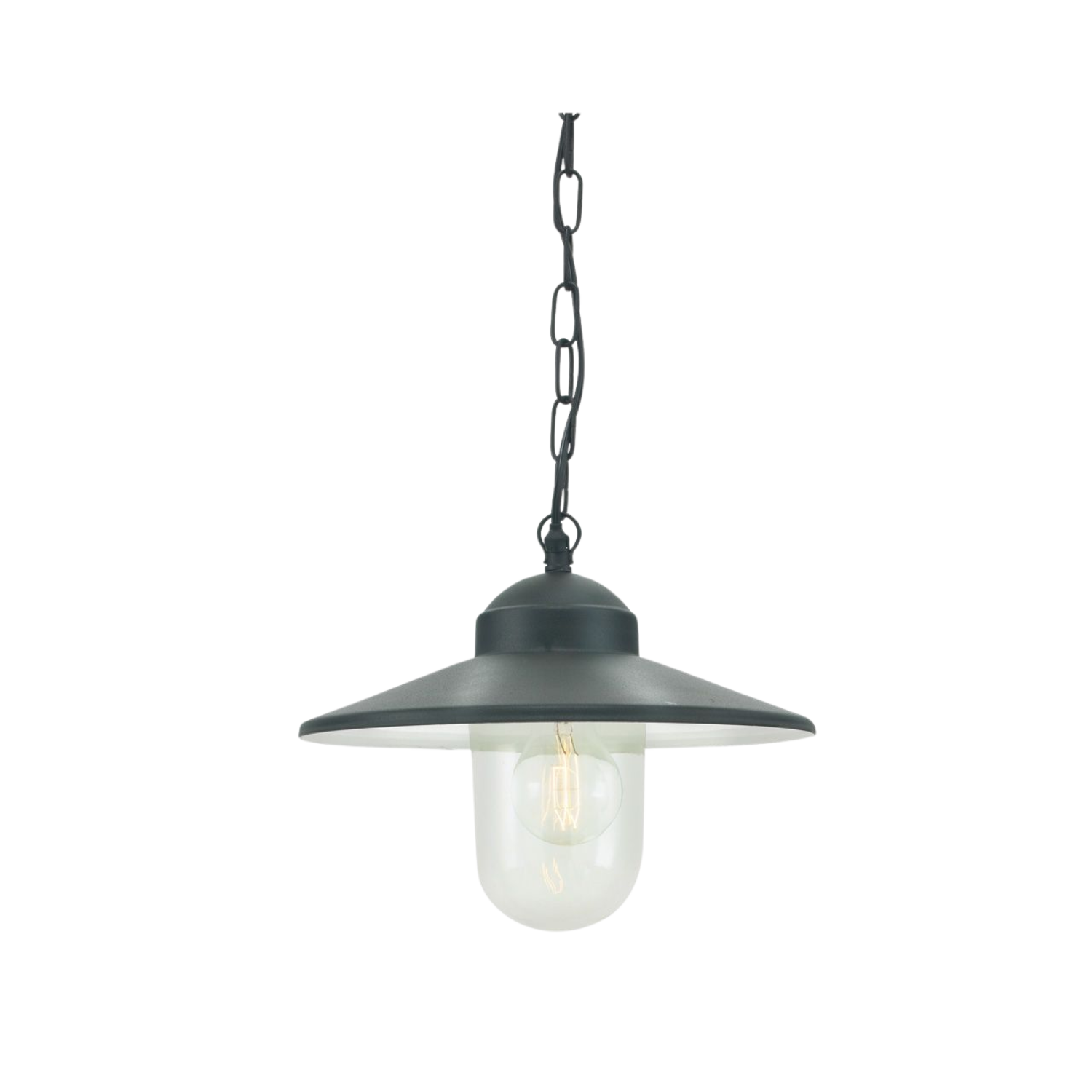 Taklampan Karlstad 230 med kedja från Norlys har en modern design. Lampan har klarglas och finns i färgerna svart, galvaniserad och koppar. Karlstad-serien består även av en vägglampa. Med tiden kommer kopparlampan att bli antikgrön/brun i färgen.