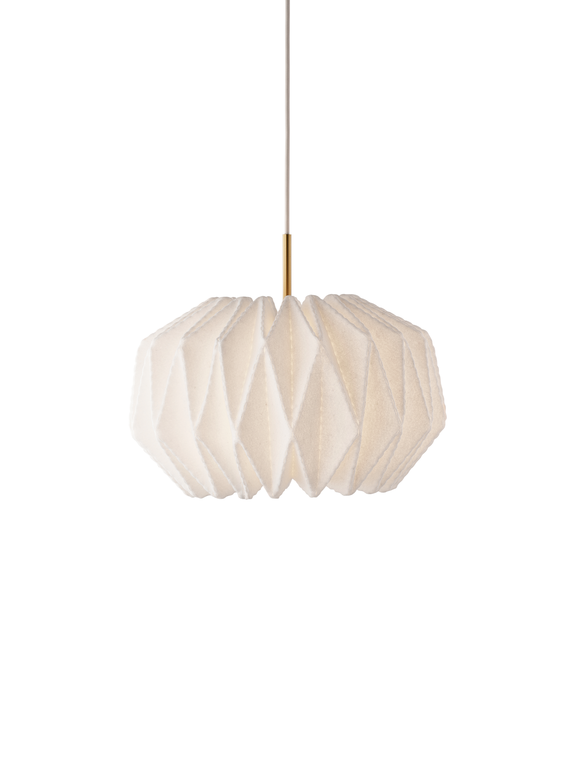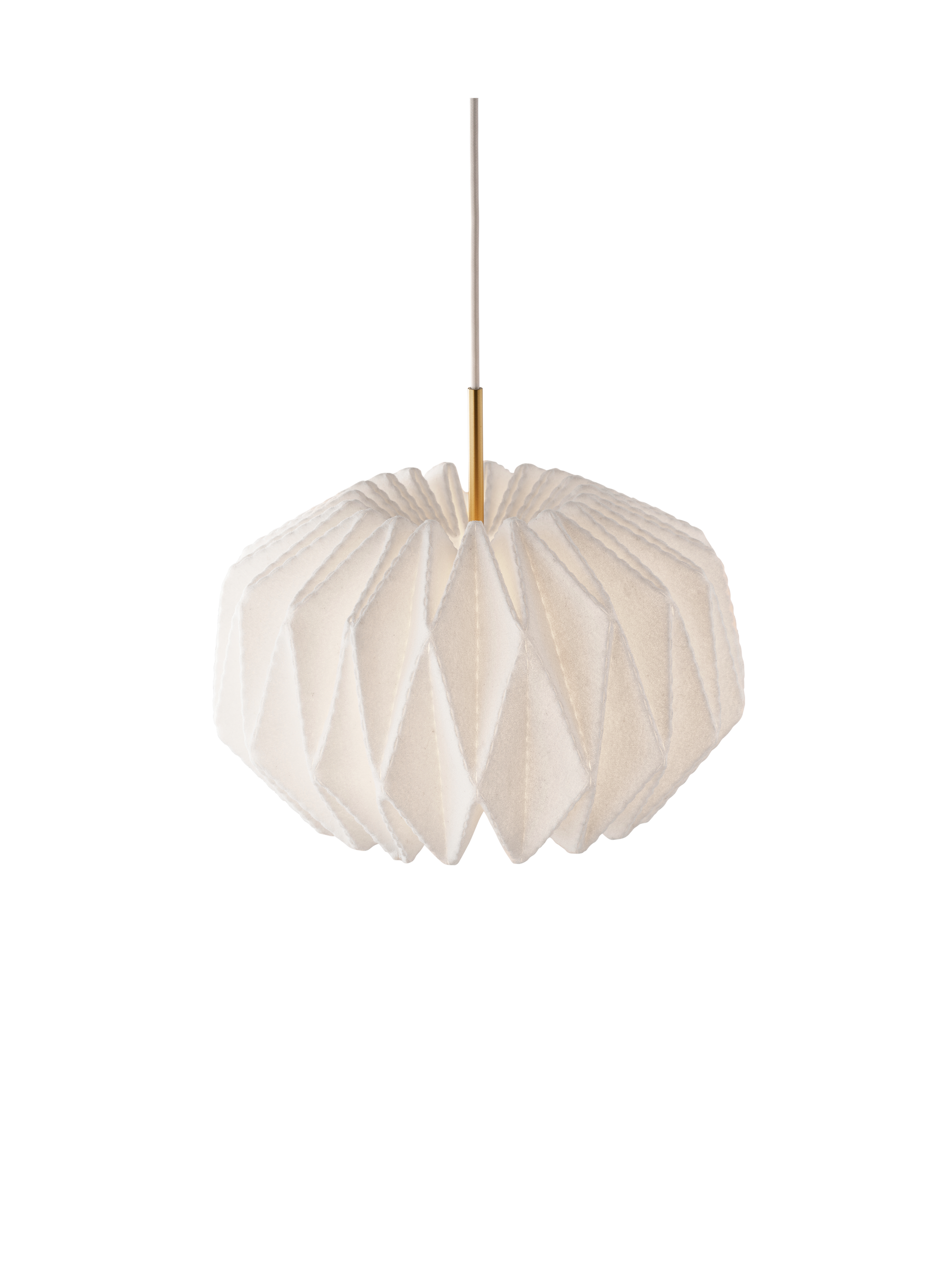 Softly Pleated-serien, designet af Philip Bro Ludvigsen i 2025, hylder Le Klints stolte håndværkstradition med en moderne, poetisk fortolkning. Den lille, runde pendel er udført i håndfoldet plast med elegante messingdetaljer, der giver lampen et både raffineret og tidløst udtryk.