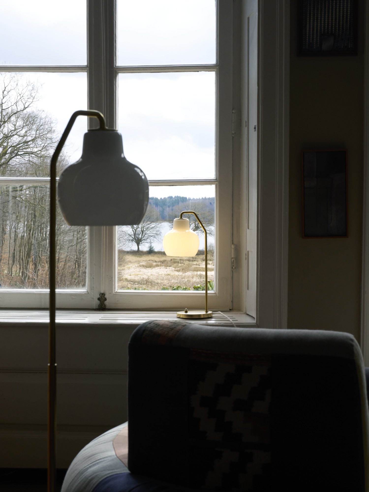 Materiale: Ubehandlet messing, mundblæst opalglas