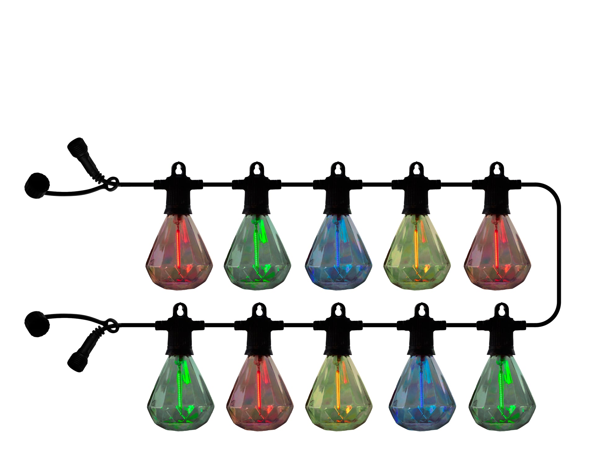Kæden fås både med kulørte og klare pærer.