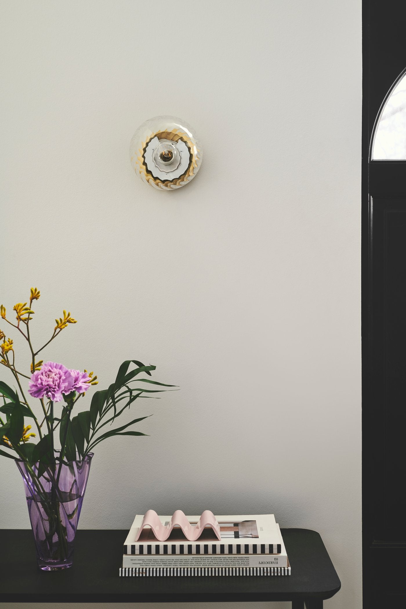 Nordlux Chisell vägglampa hämtar sin inspiration från den glamorösa art déco-stilen och kombinerar den med modern mässing och förtrollande virvelmönstrat glas. Denna lampa skapar inte bara ljus, den skapar en stämning. Den virvlande glaskupolen skapar en vacker ljuseffekt på väggen och ger en touch av lyx till alla rum.
