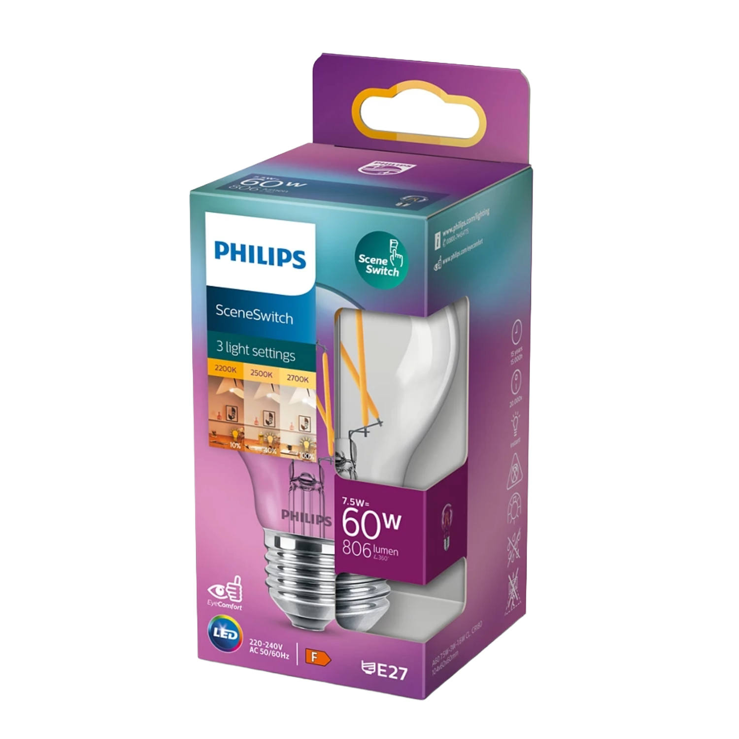 E27 ljuskälla (stort uttag) i klar med 3 steg. Det betyder att du kan dämpa ljuset genom att helt enkelt slå på och stänga av strömbrytaren. Glödlampan lyser varmare i färgen när den är nedtonad. Så du får ett fint behagligt ljus.