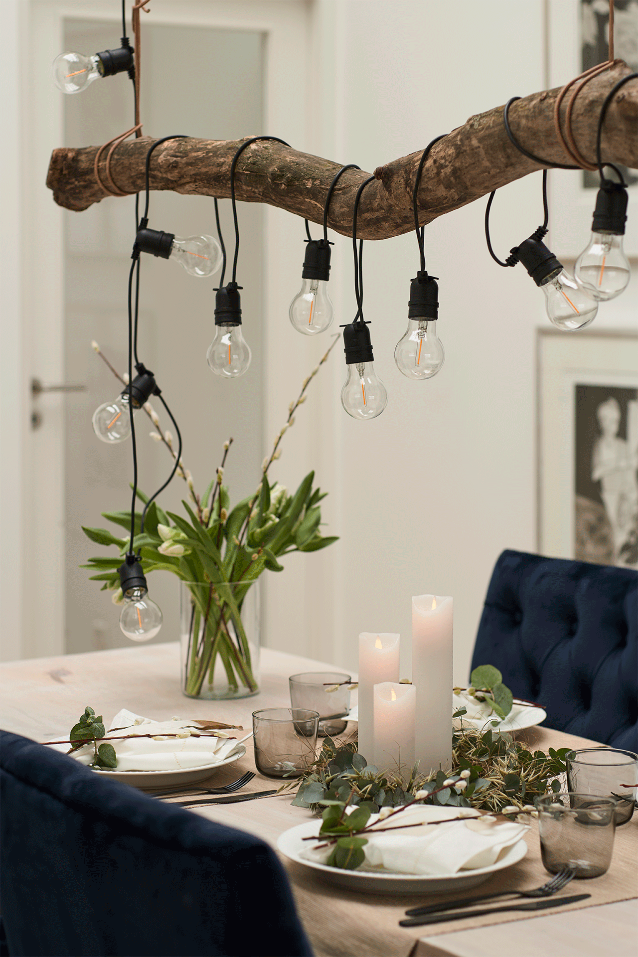 Möjlighet att köpa tilläggskedja för upp till 100 lampor. Du hittar tilläggskedjan här.