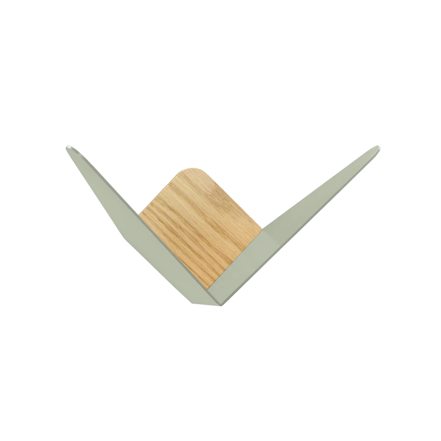 Butterflies Mini i nuance Olive kombinerer funktion med farverig, skandinavisk elegance. Brug den som knage i entréen til jakker, tasker og tørklæder, mens den lille hylde passer perfekt til nøgler, pung eller mobil. Designet af Makers With Agendas, med en dobbelthænder-funktion og udskifteligt egetræs-cover (lys eller mørk), giver den et personligt touch i hjemmet.